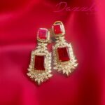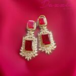Petal structure arrange surrounded by Zirconia to Royal Red AD Long Earring designed by Dazzle by Sonia unique only for you.