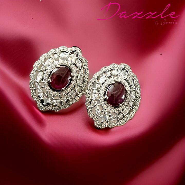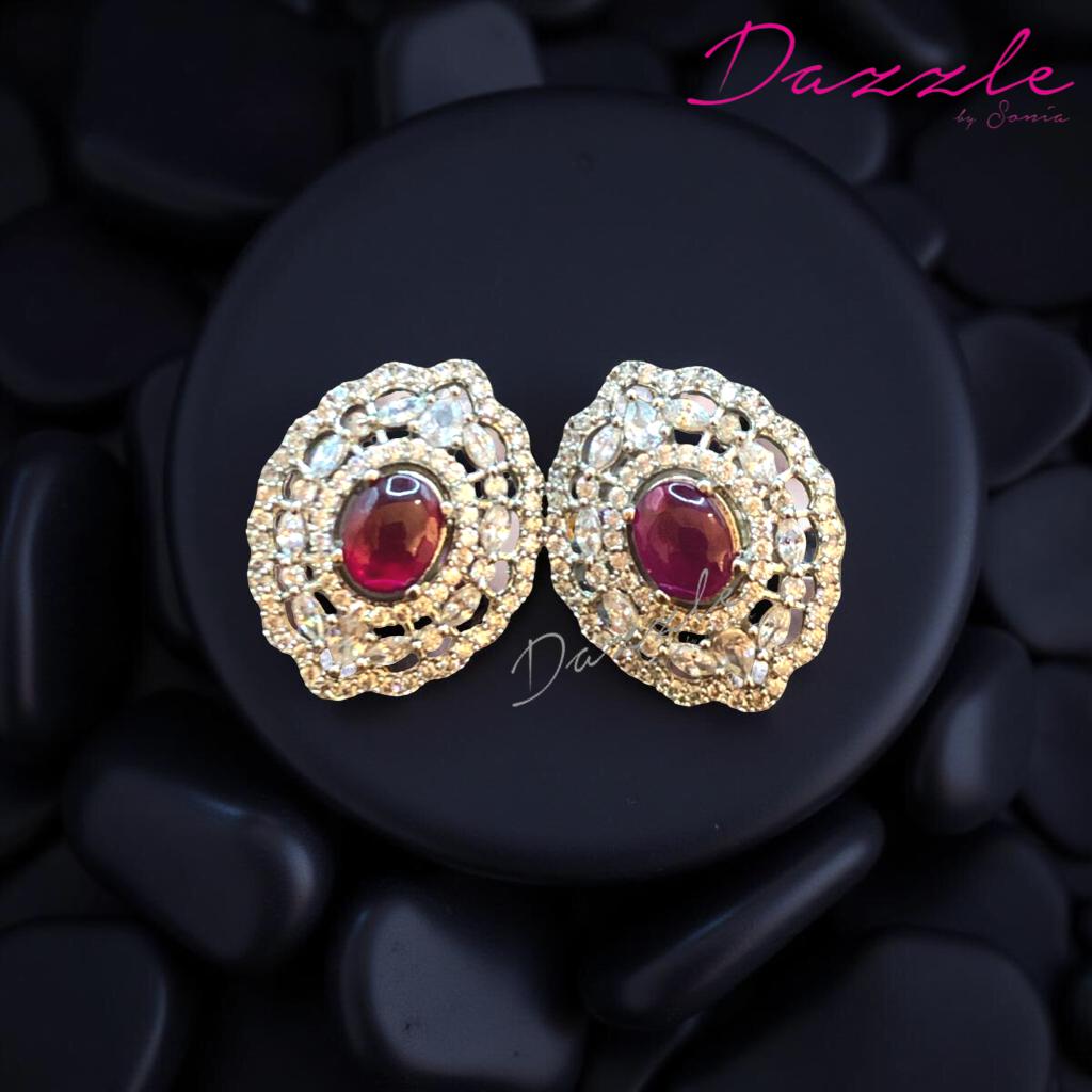 Crafted in premium brass with a glossy finish, these earrings feature AAA-grade red zirconia stones that add a bold touch of elegance. Perfect for festive occasions or everyday glamour.