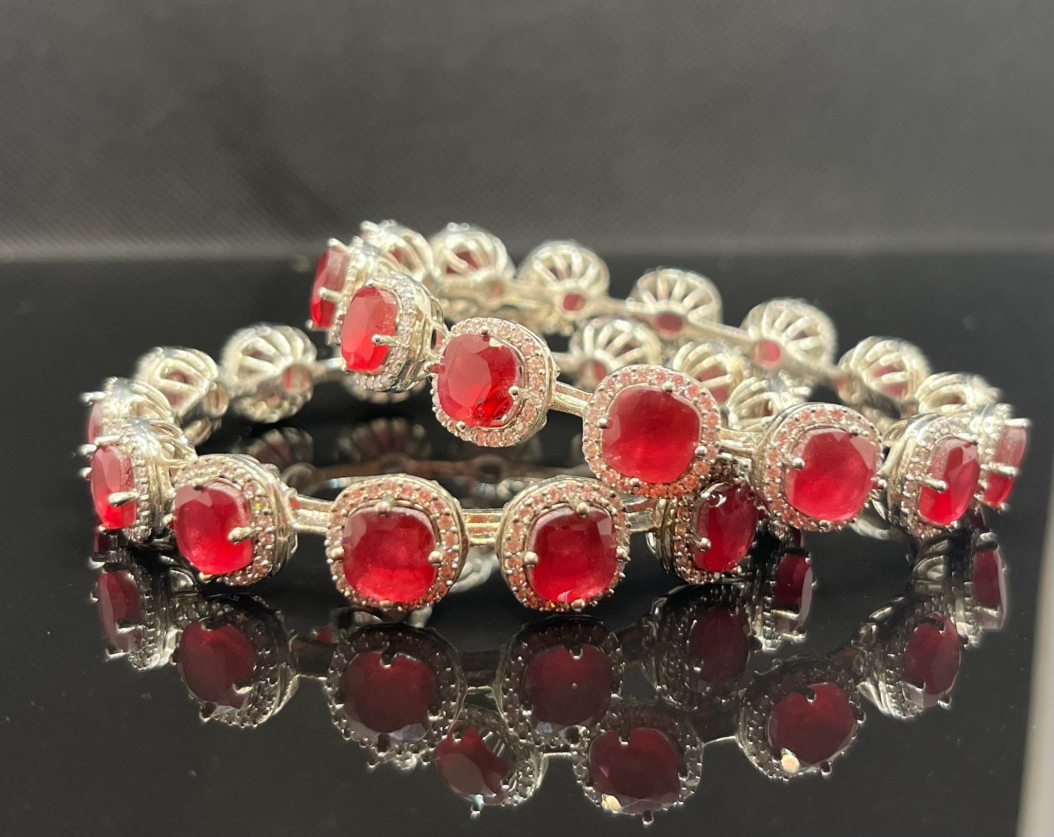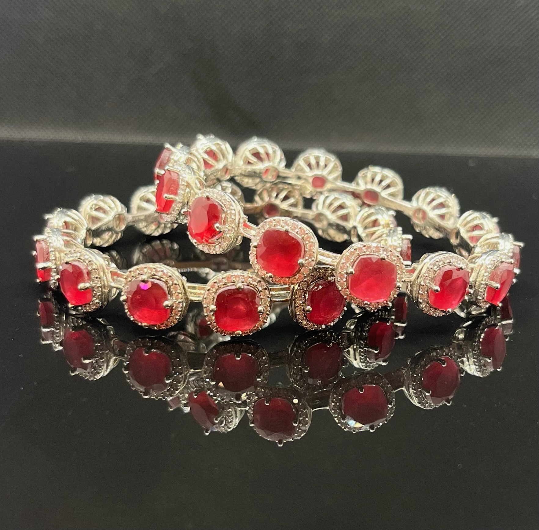 RUBY RED AND SILVER PLATED BANGLES