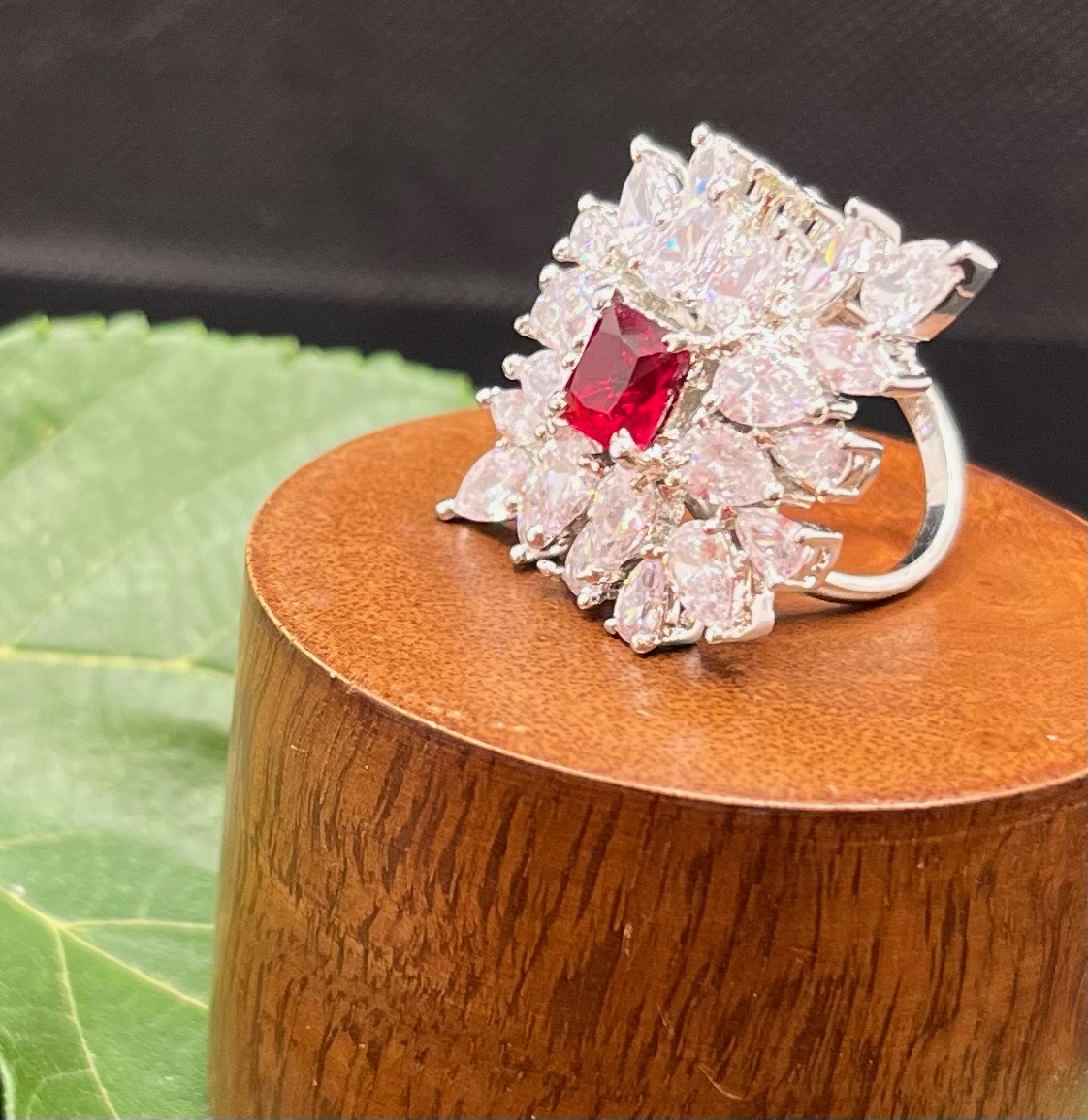 CUBIC ZIRCONIA MADE WITH SQUARE RUBY RED STONE RING.