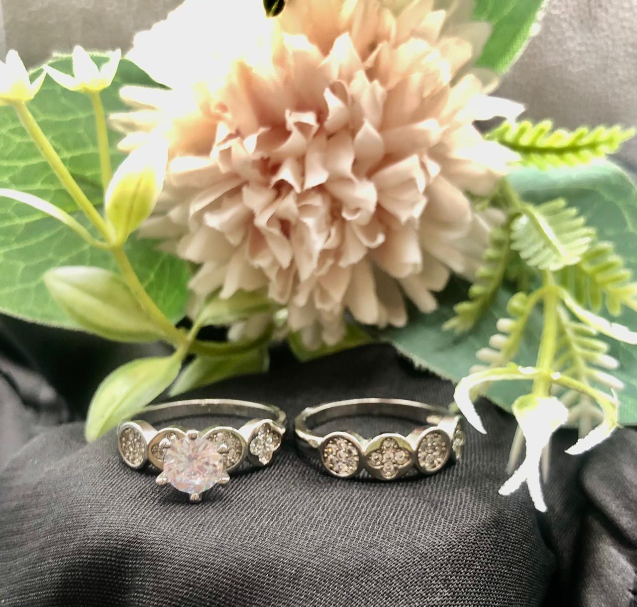TWO RING SET SILVER PLATED MADE WITH AD AND CUBIC ZIRCONIA.