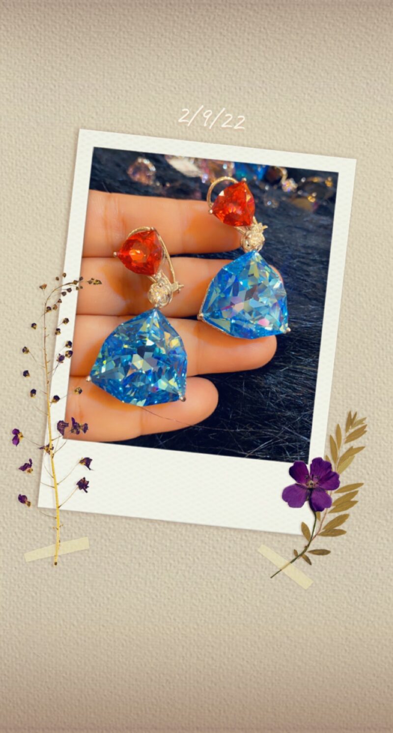 Triplet Color of Ruby Red, Aqua, Silver and Swarovski Crystal long earring timeless to modern and trendy, so you can find something to suit your personal style.
