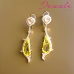 Yellow and Pink with Silver Plated on brass metal long Earring sparkling, bright for fashionable women.