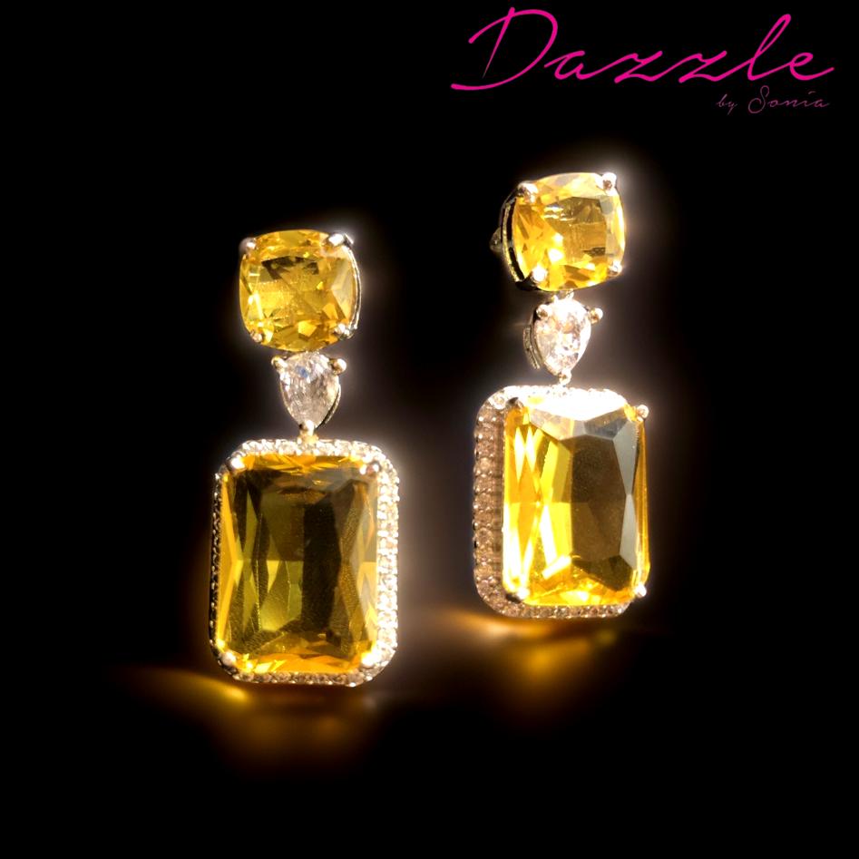 Rectangle geometric shape yellow and Silver AD (American Daimond) Earring gives extra beautify add on the face.